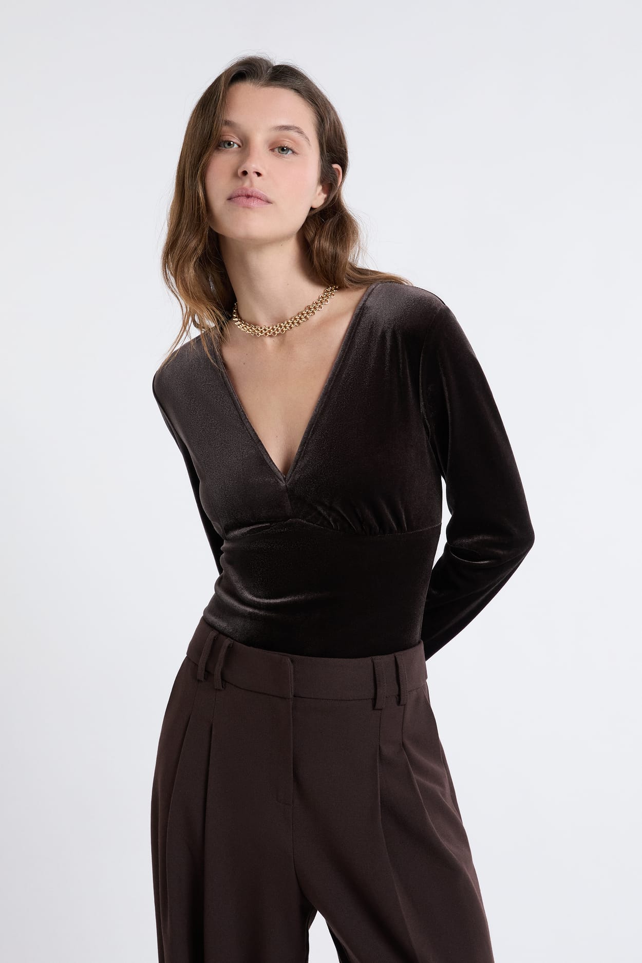 Sobre et élégant, ce body manches longues offre un effet velours et dévoile un subtil décolleté en V....