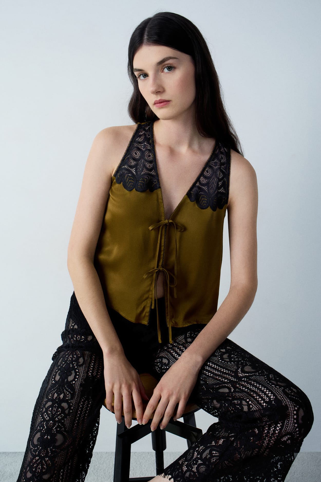 Diese fein bestickte Pyjama-Hose enthüllt subtil die Haut durch ihre durchbrochenen Muster. Mit ihrem fliessenden Schnit...